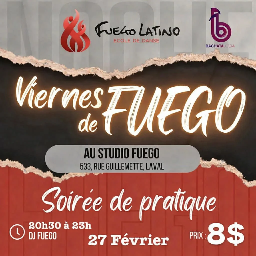 Ce Vendredi 27 Février 2026, viens vibrer avec nous au STUDIO FUEGO pour un Viernes de FUEGO qui va réchauffer ton week-end !